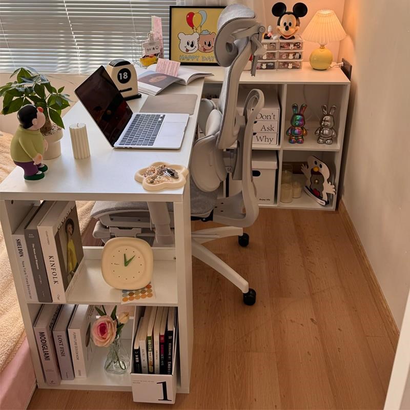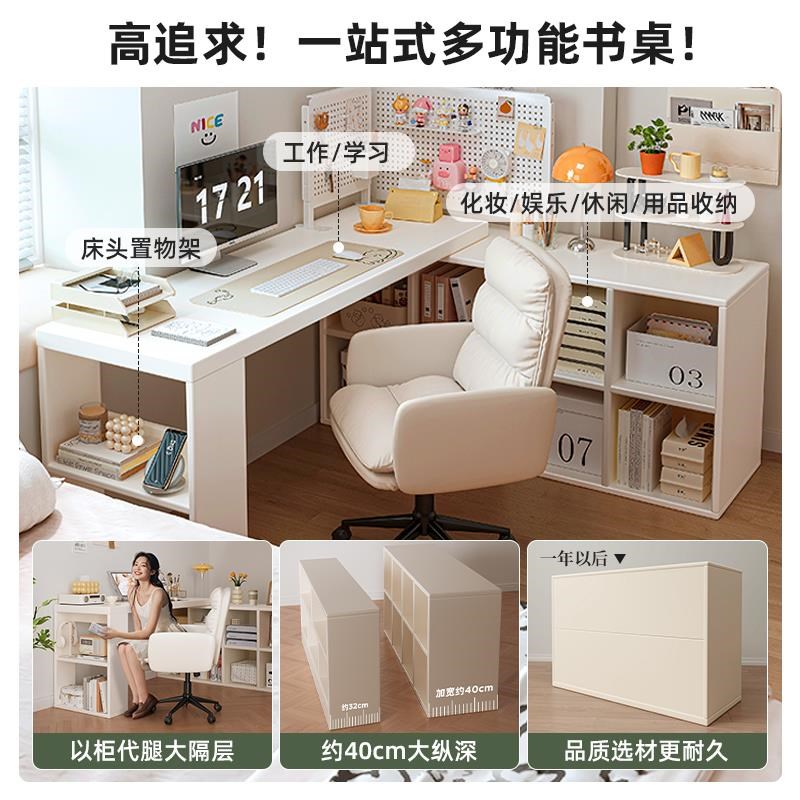 转角书桌家用学习桌子卧室女生梳妆台书柜一体实木l型拐角电脑桌
