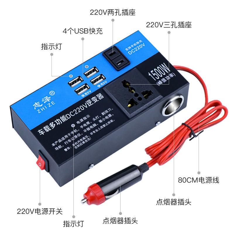 汽车多功能车载逆变器12v24v转220v大功率智能通用电源转换器插头