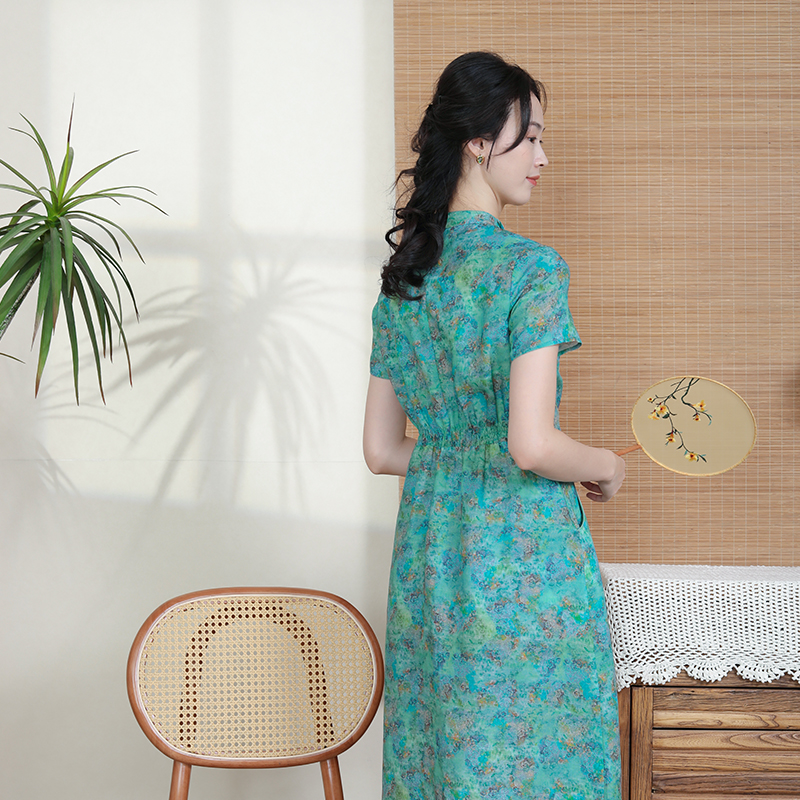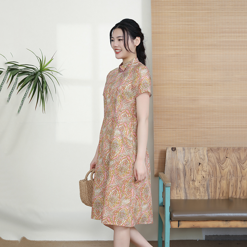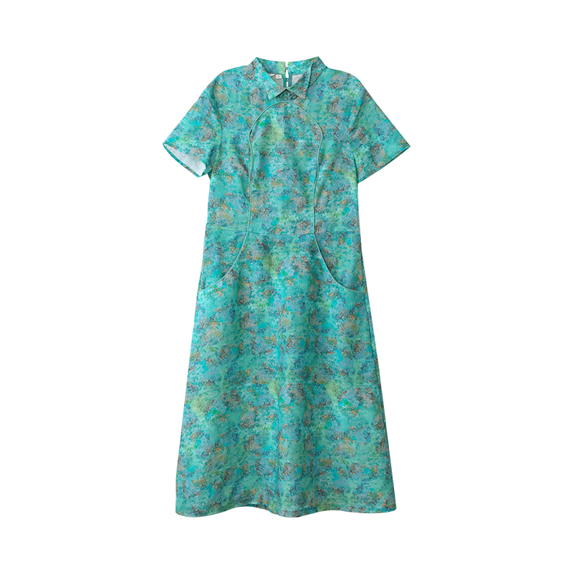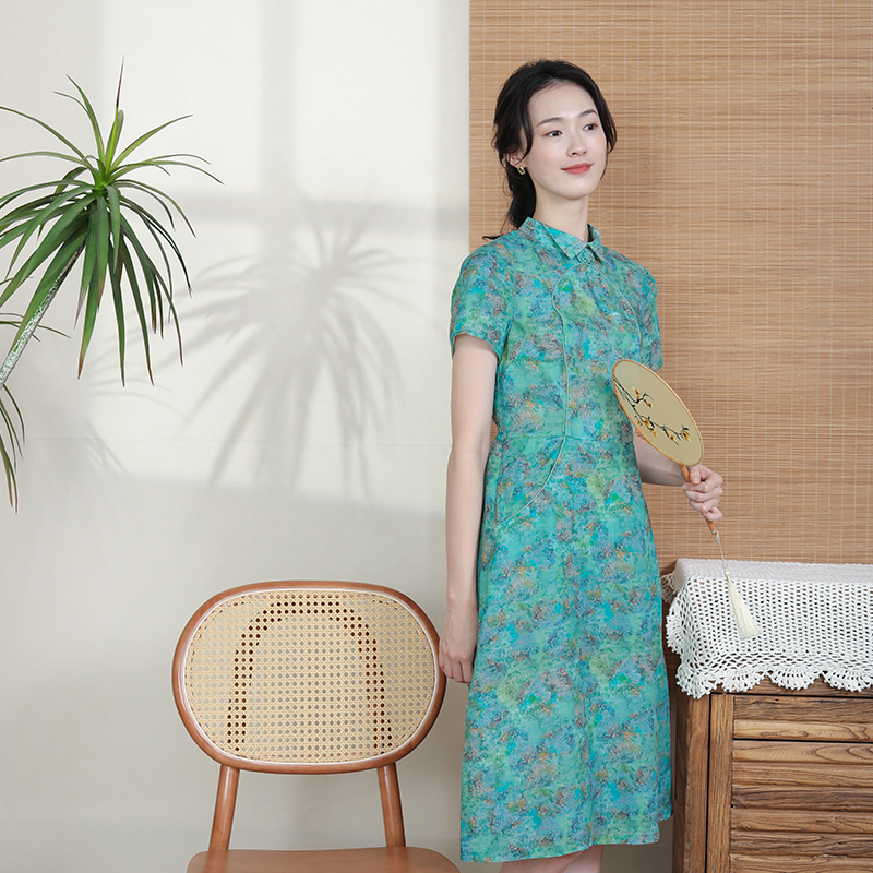 布符夏季新款A摆连衣裙碎花小翻领气质女士日常休闲通勤