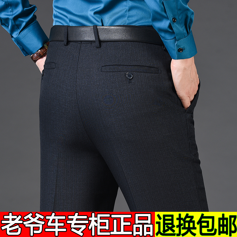 老爷车秋冬厚款西裤男裤中年男士商务休闲长裤子直筒爸爸弹力西裤
