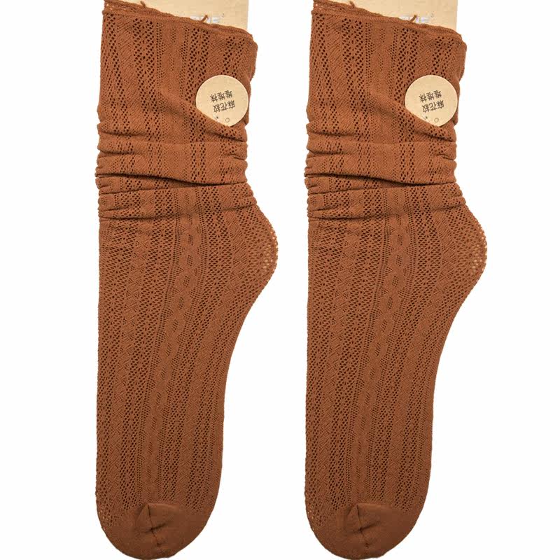 春夏季日系复古堆堆袜女薄款韩国潮流中筒纯棉镂空渔网性感短袜子