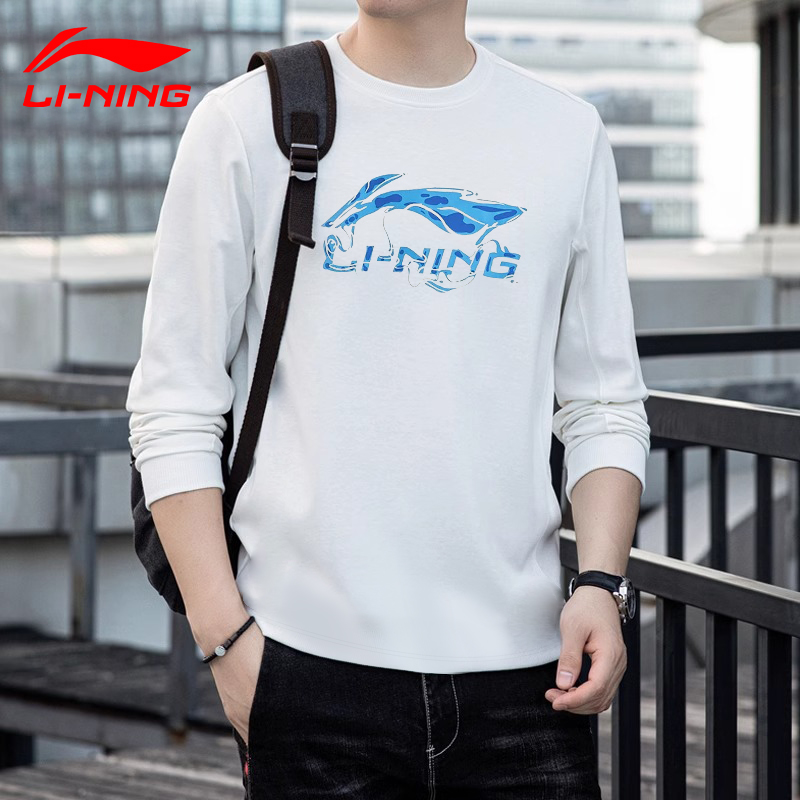 李宁黑色卫衣男春秋季新款上衣薄款宽松休闲圆领透气长袖运动外套