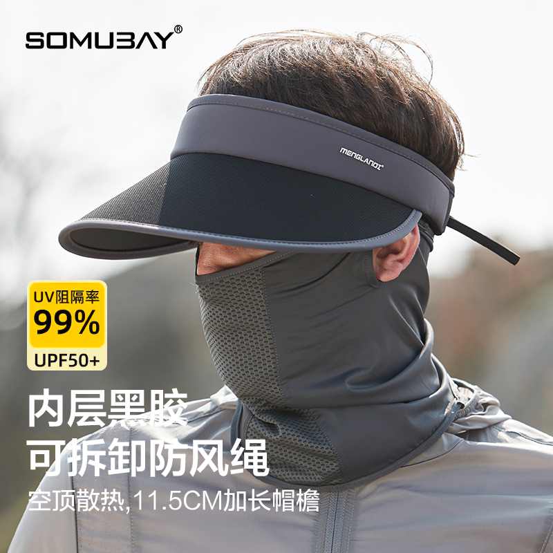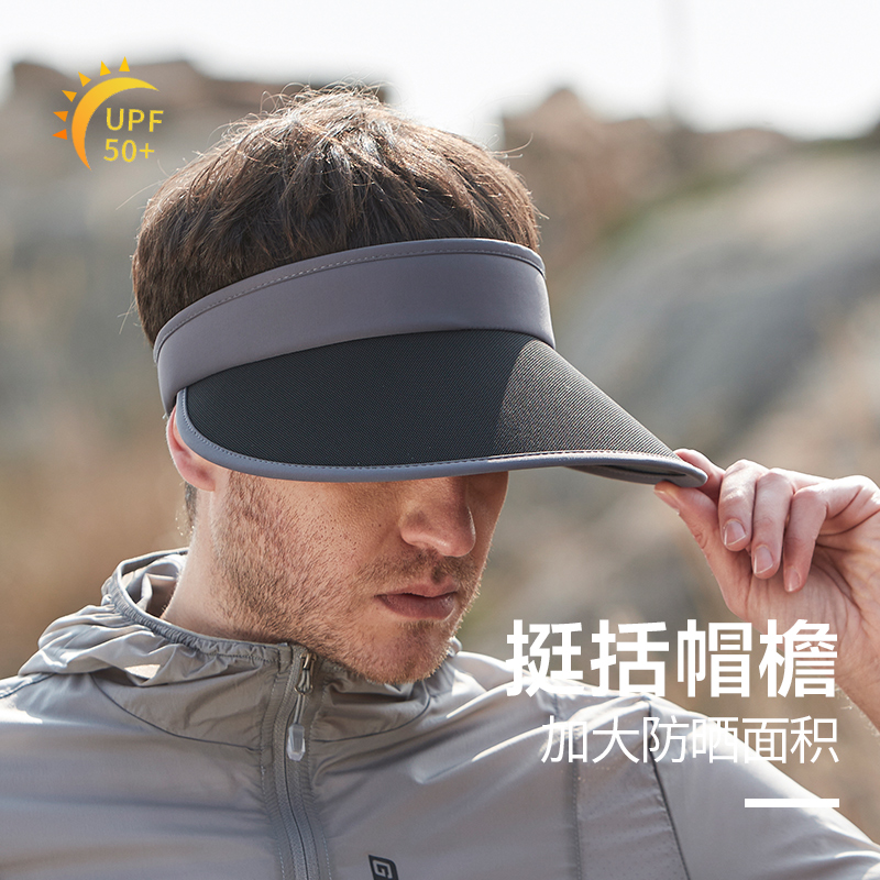 帽子男士新款黑胶防晒帽男款夏季大檐遮阳帽户外太阳帽运动空顶帽