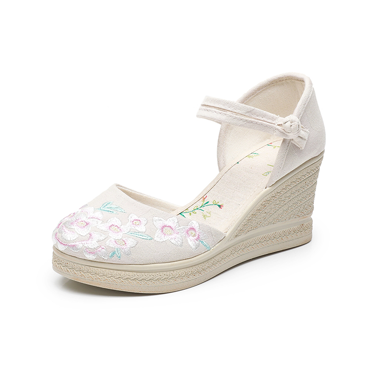 2025年春夏款民族风高跟凉鞋坡跟单鞋老北京布鞋女鞋绣花鞋