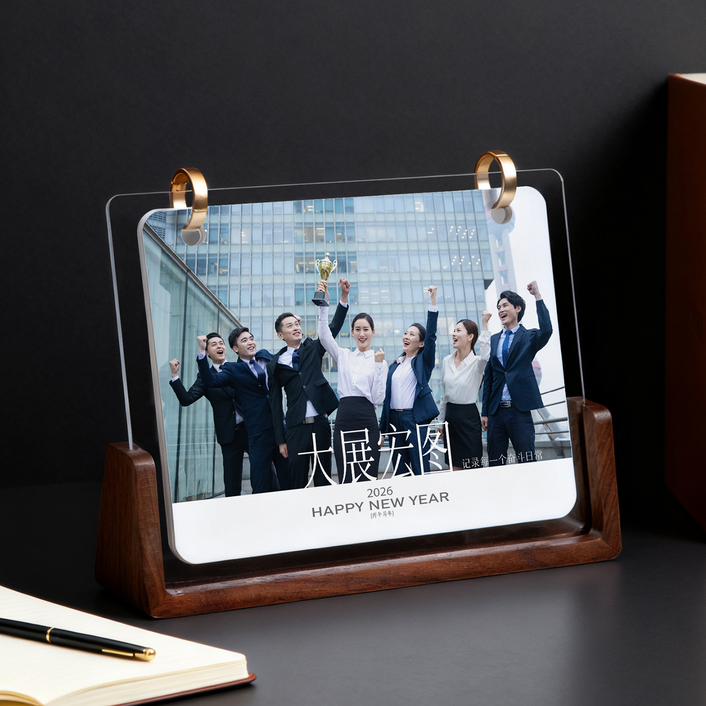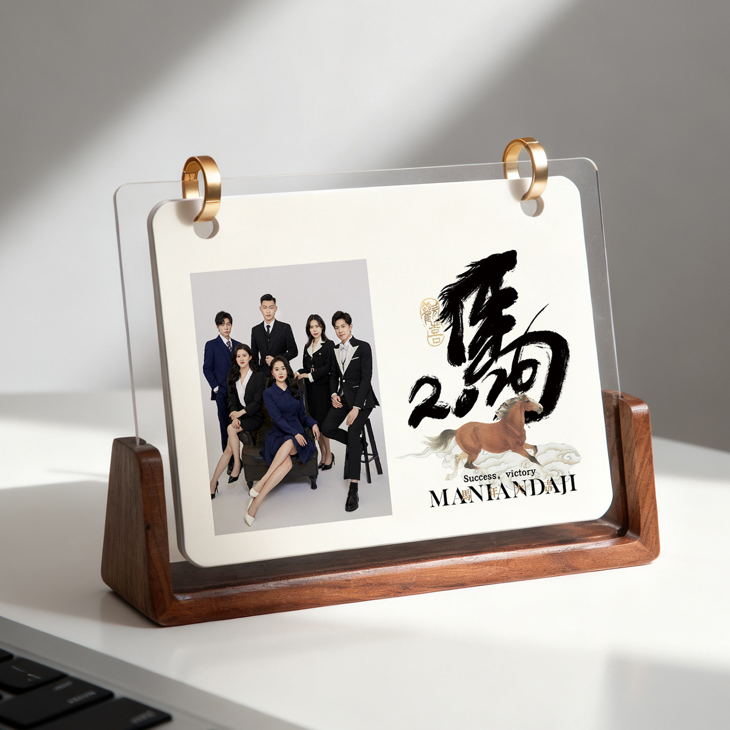 2026年新款台历定制个人照片创意高颜值日历商务办公室桌面高级感摆件马年月历高端新年礼物黄历翻页小台历