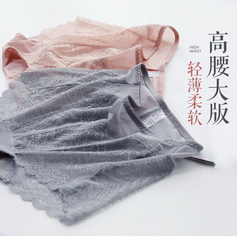 加大版码胖MM200斤性感女蕾丝网纱高腰三角内裤头女士轻薄款透气