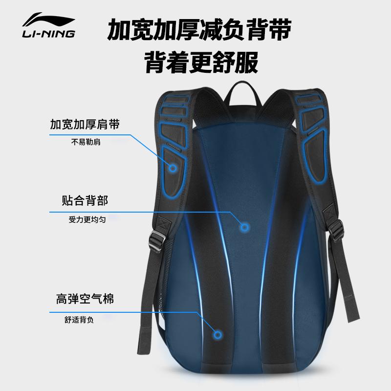李宁双肩包男书包女篮球运动大容量高中学生户外旅行轻便电脑背包