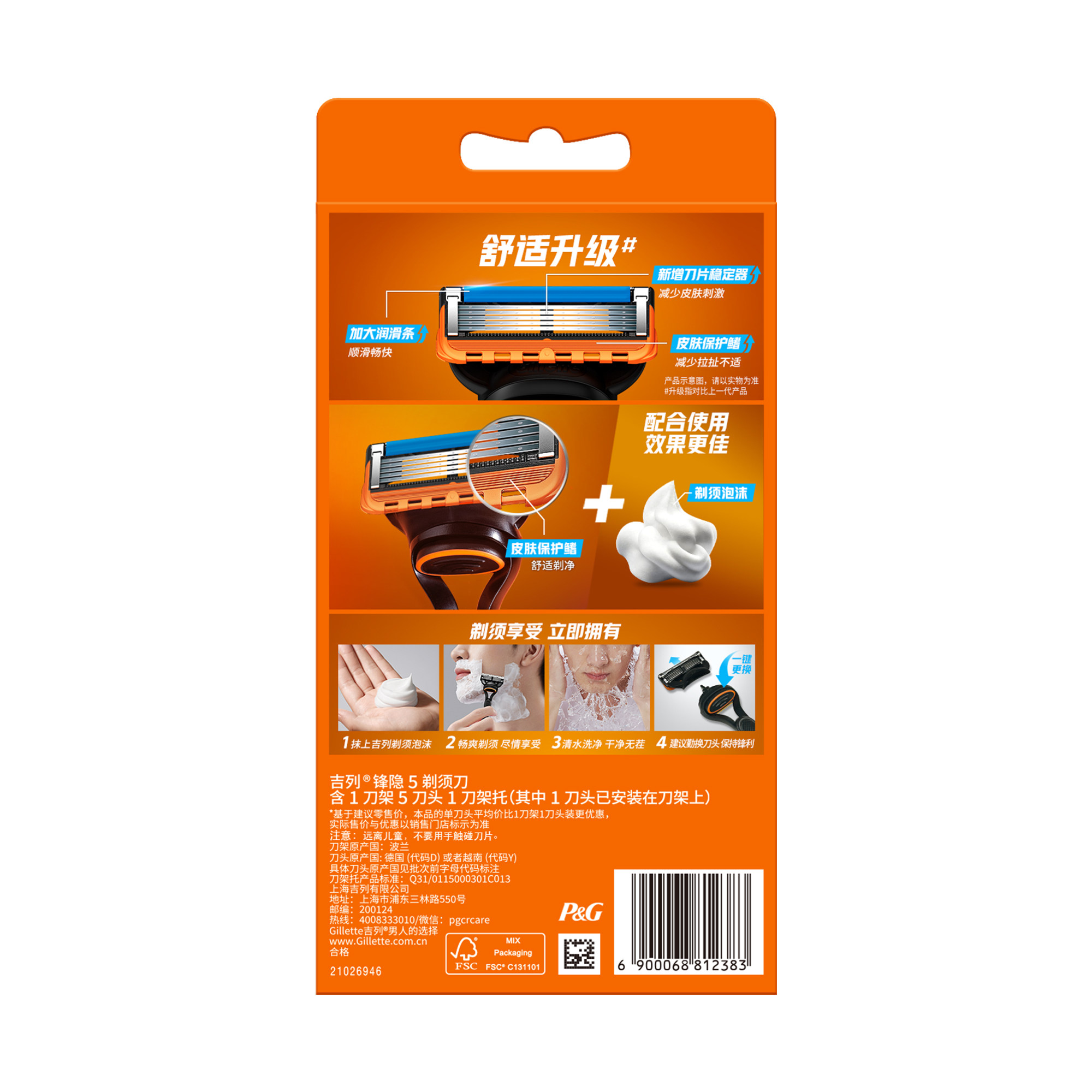 屈臣氏吉列锋隐5刀架 含1刀架5刀头1刀架托男生