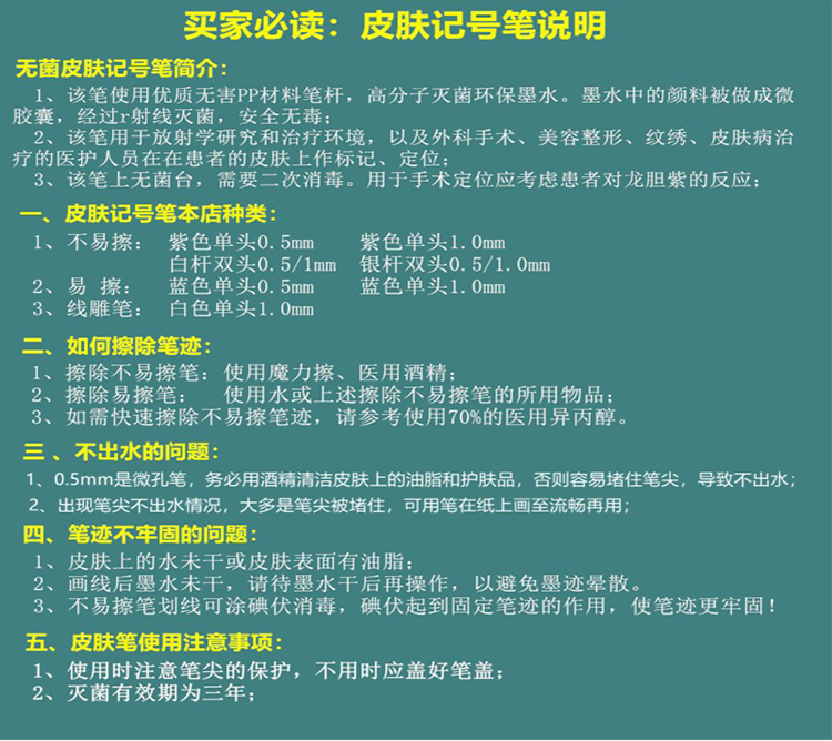 医用无菌皮肤记号笔不易擦手术放疗纹绣纹身微整双眼皮手术划线笔