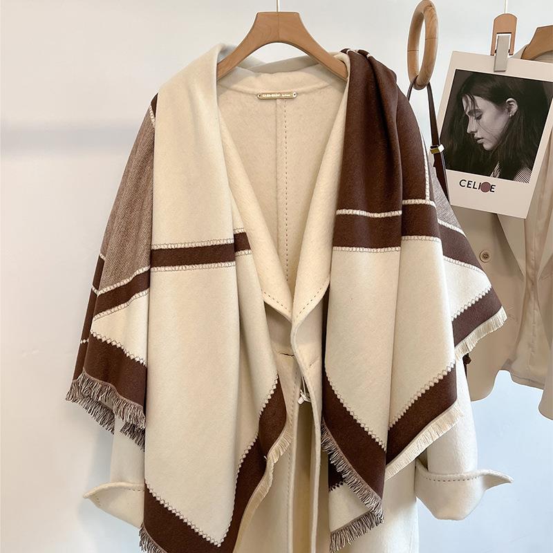 2025新款披肩外搭女空调房斗篷秋冬季彷加厚保暖围巾围脖方1006h