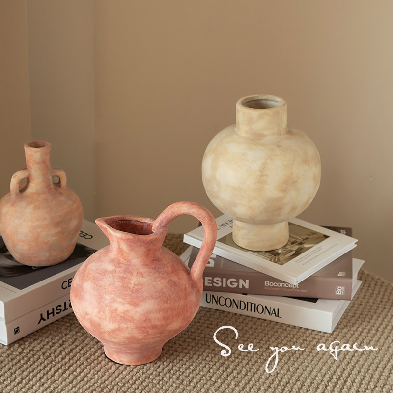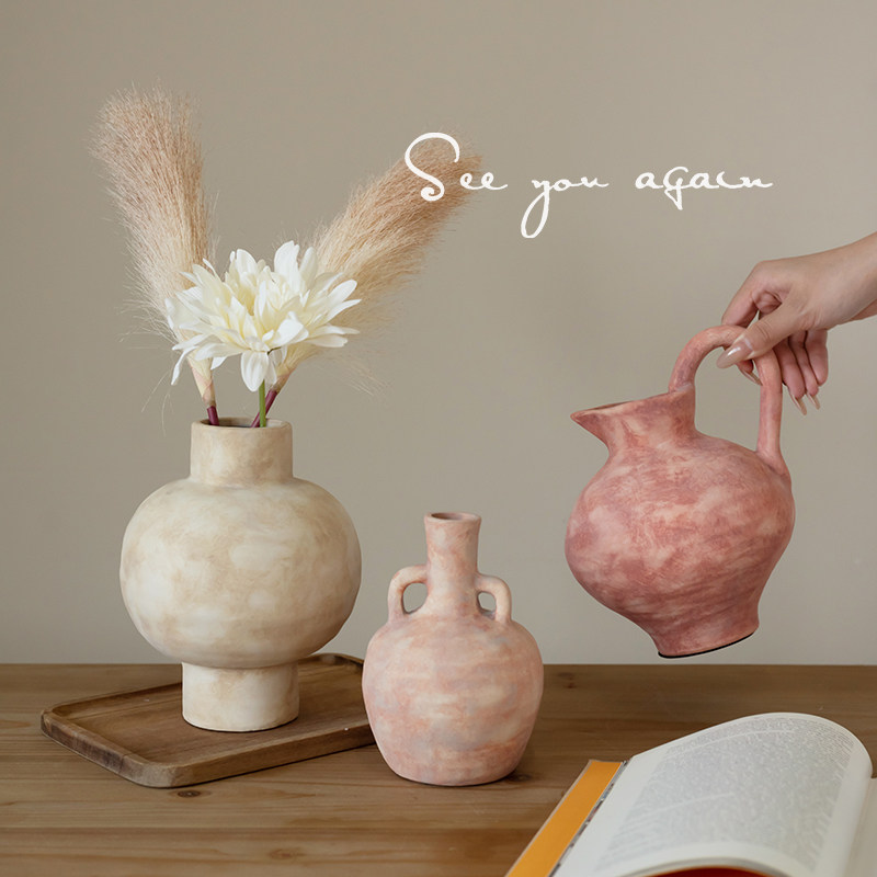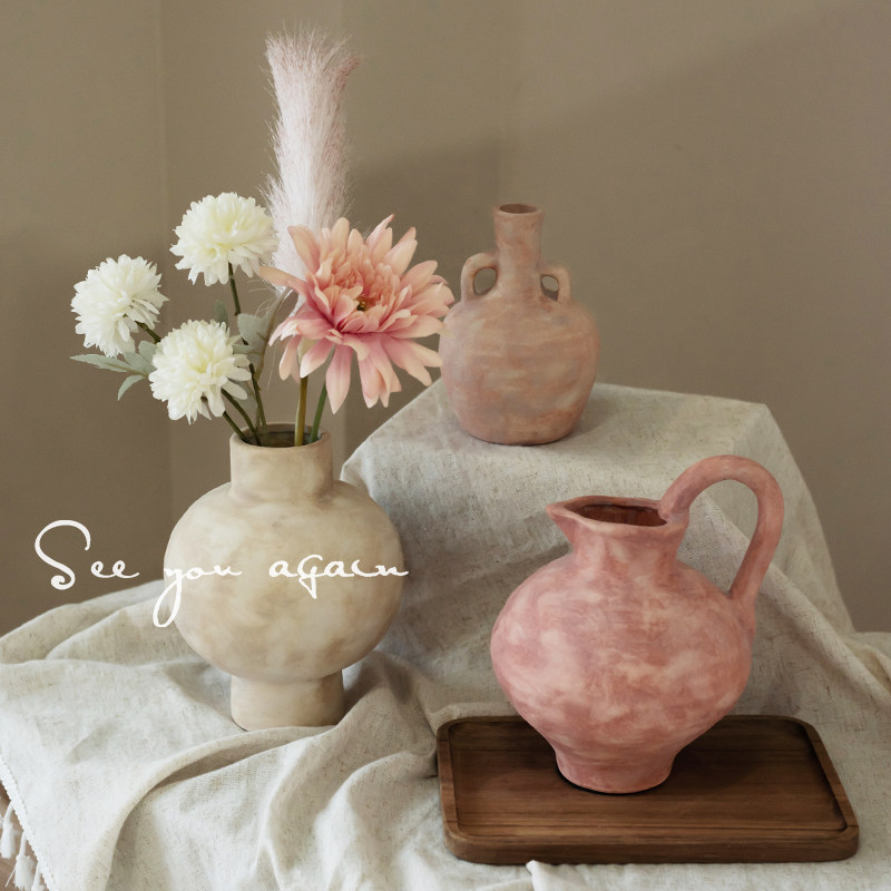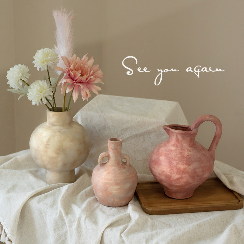 中古手作陶瓷花瓶侘寂风陶艺客厅民宿插花鲜花水培餐桌装饰品摆件