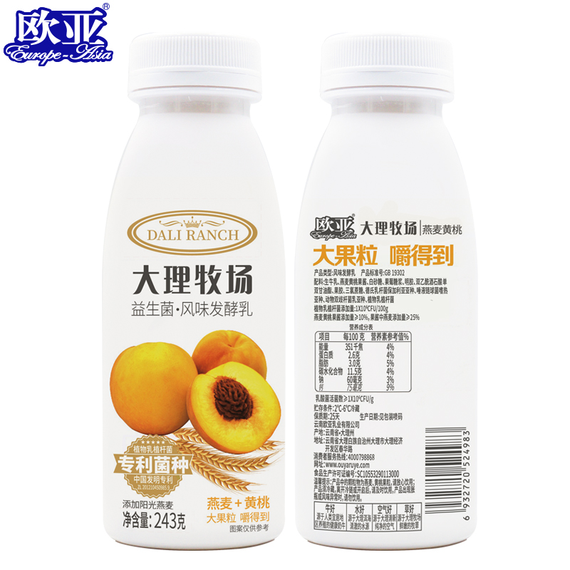 【日期新鲜】欧亚大理牧场低温果粒酸奶燕麦黄桃酸牛奶243g*12瓶