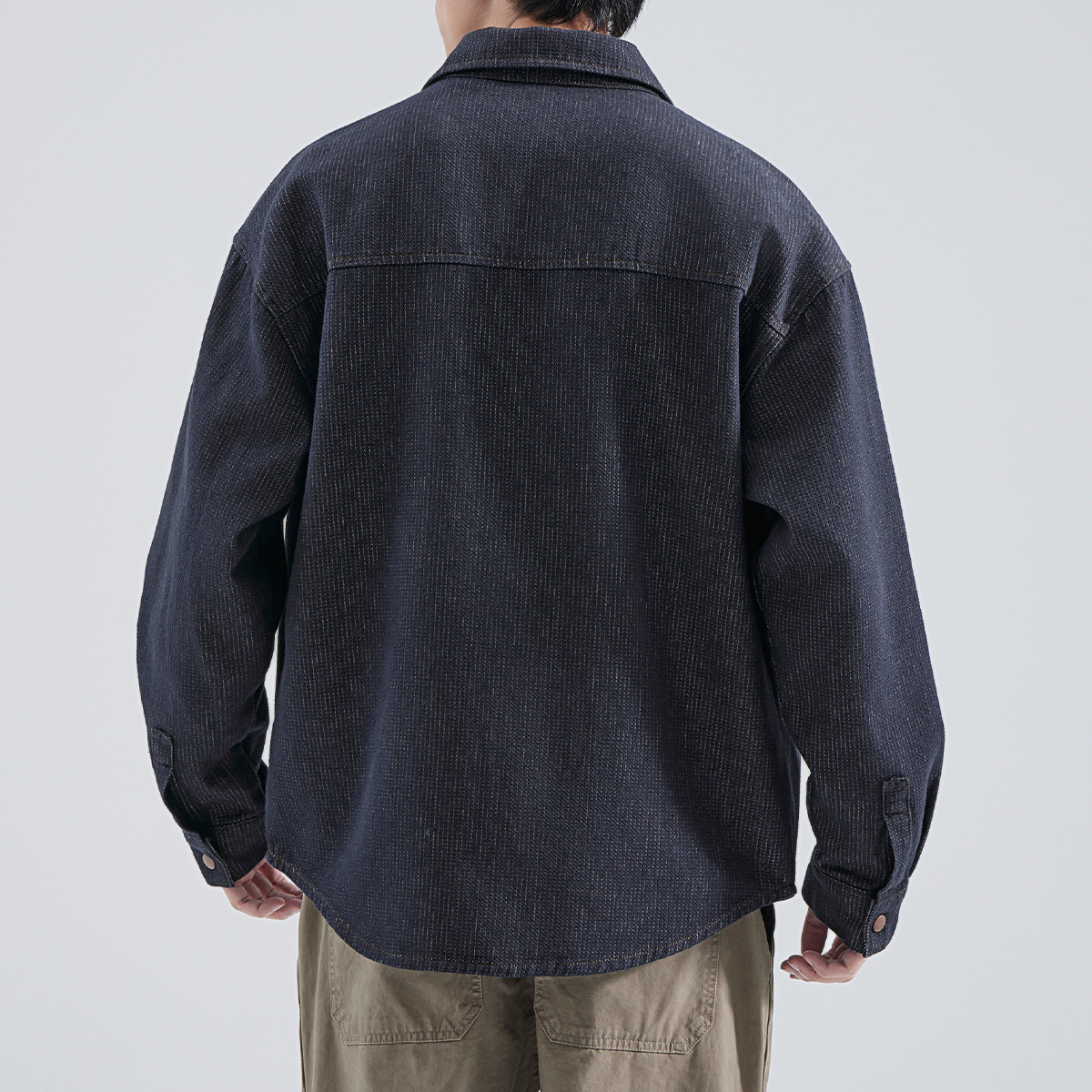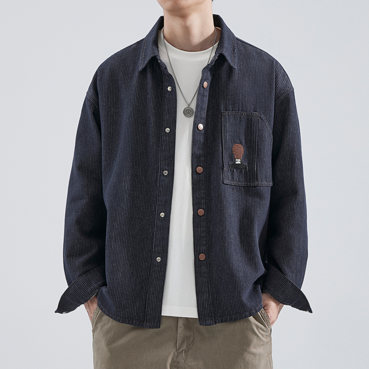 hansca水洗刺绣长袖牛仔衬衫男2025秋季美式复古潮流宽松工装外套