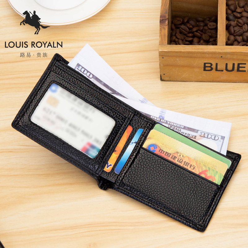 路易贵族男士真皮短款钱包横款简约钱夹薄款头层牛皮青年新皮夹子