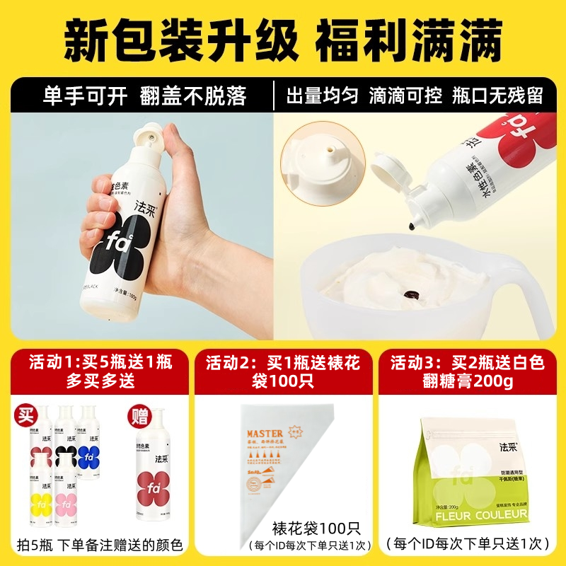 FC法采色素烘焙可食用fc大红奶油蛋糕橙黑色白色烘培金色色素180g