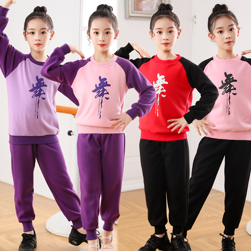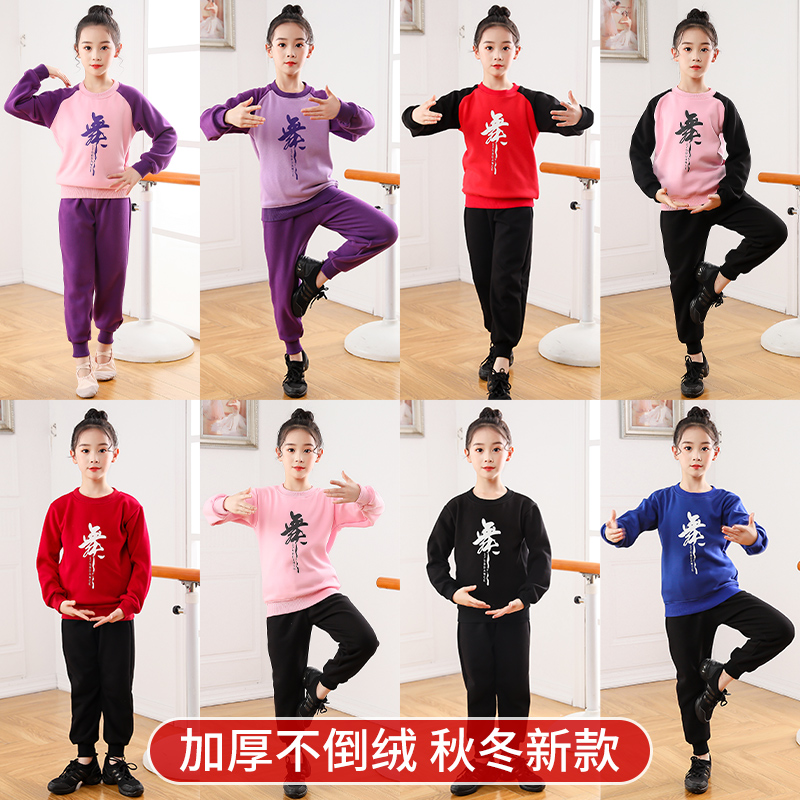 儿童舞蹈服女秋冬练功服长袖加绒套装中国舞跳舞服男童拉丁舞服装