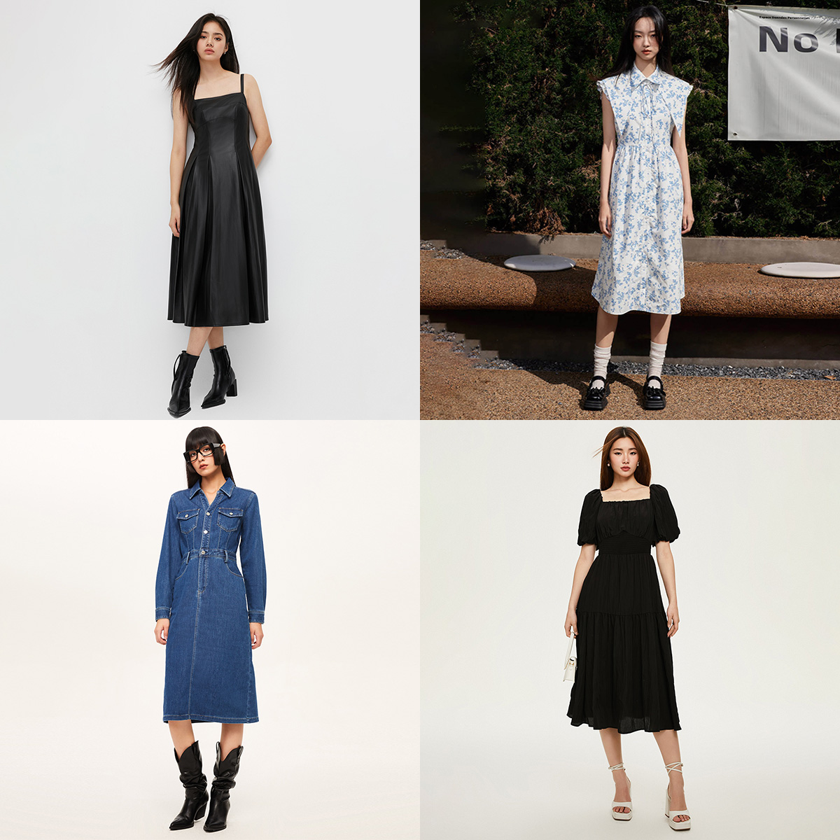 【ONLY奥莱】秋冬通勤气质收腰V领中长款牛仔连衣裙女