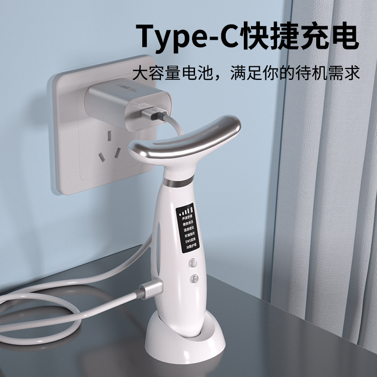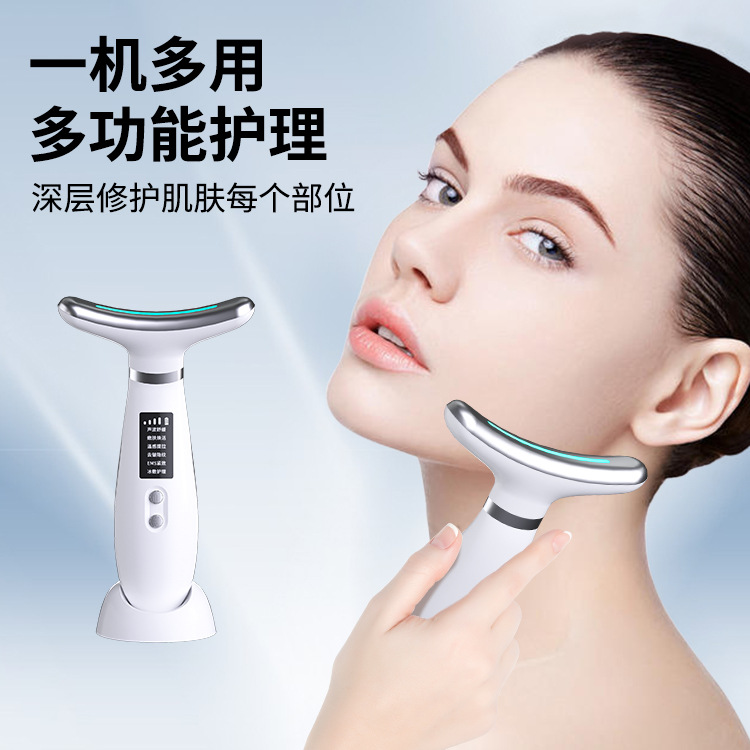 跨境热销美颈仪 EMS微电流彩光颈纹仪 颈部美容仪 颈脸两用导入