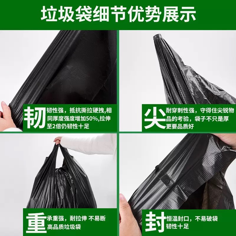 背心垃圾袋黑色点断式家用办公室大号黑色加厚垃圾袋商用