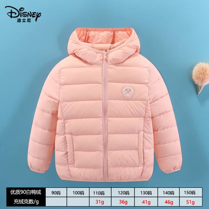 正品迪士尼童装儿童轻薄羽绒服男童羽绒外套女小童秋冬装90白鸭绒