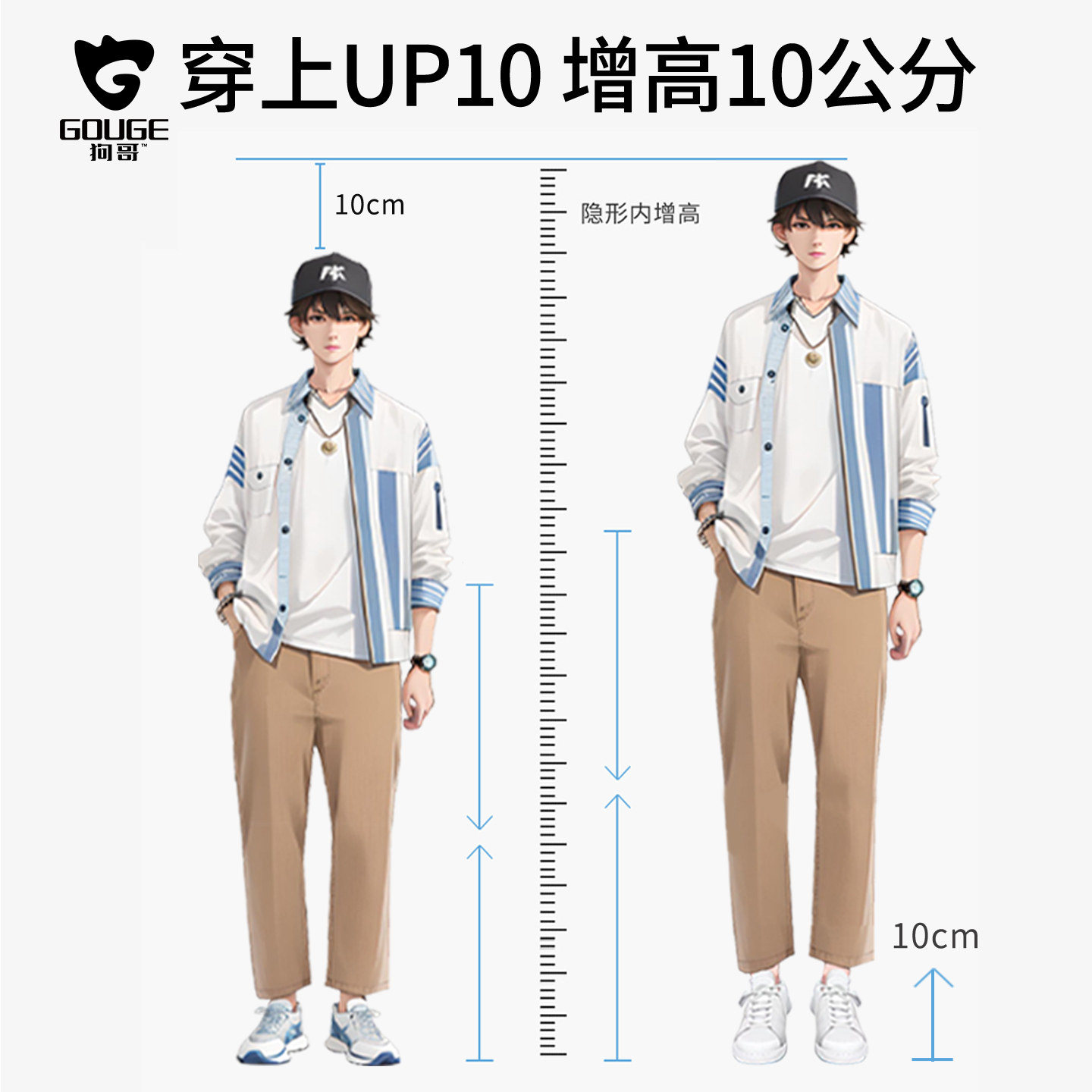 狗哥UP10【10cm增高】厚底小白鞋