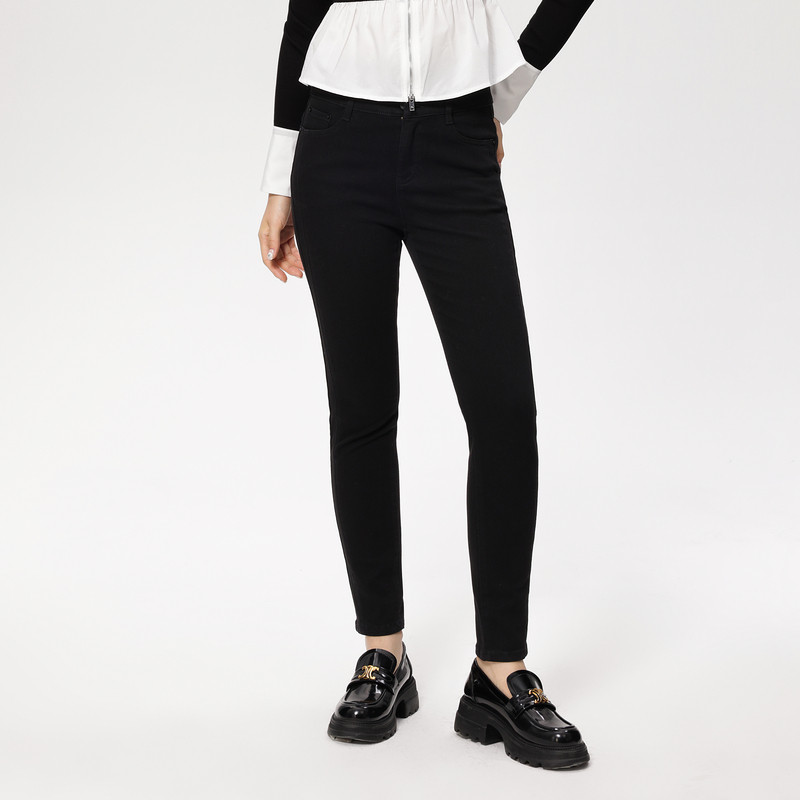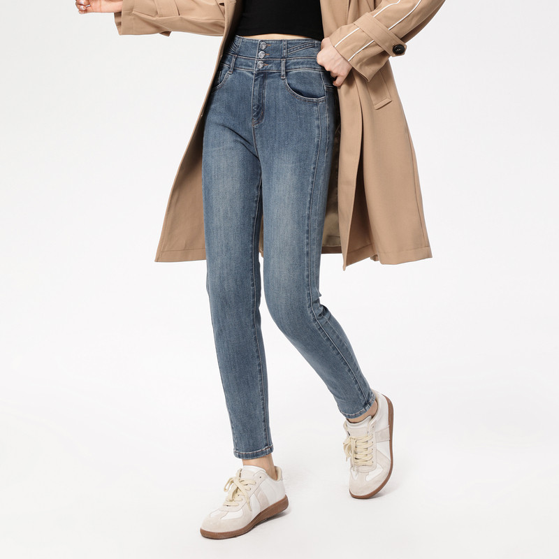 飘蕾高腰紧身牛仔裤女秋季新款弹力修身显瘦三粒扣小脚长裤