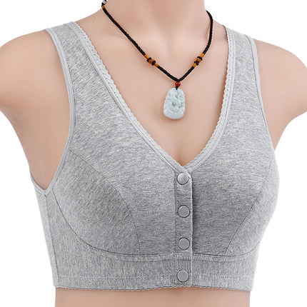 妈妈内衣文胸无钢圈聚拢前排扣背心式哺乳上托棉质中老年老人胸罩