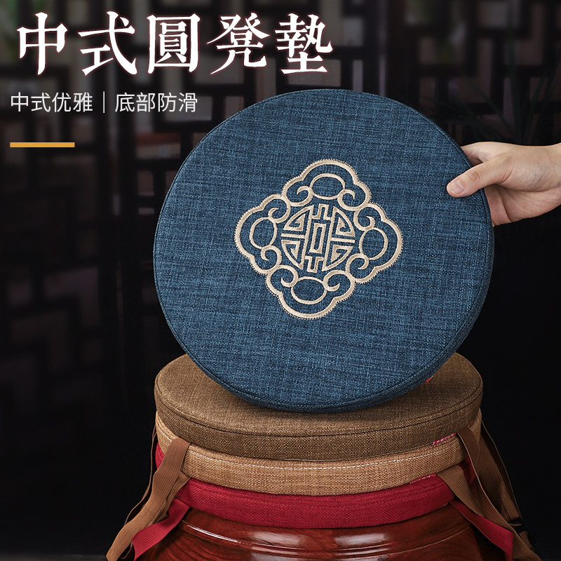圆形坐垫中式红木椅子垫鼓凳地上榻榻米飘窗圈椅藤椅垫防滑可拆垫