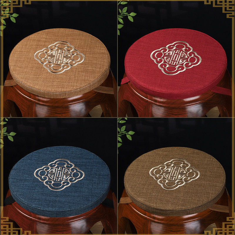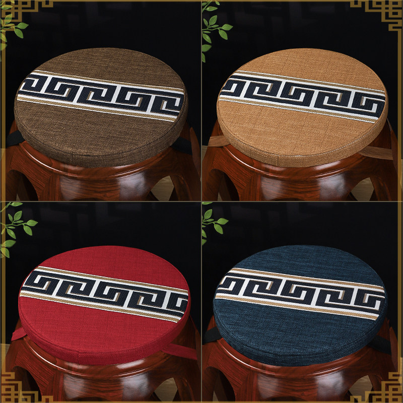 中式刺绣织带圆形古凳垫