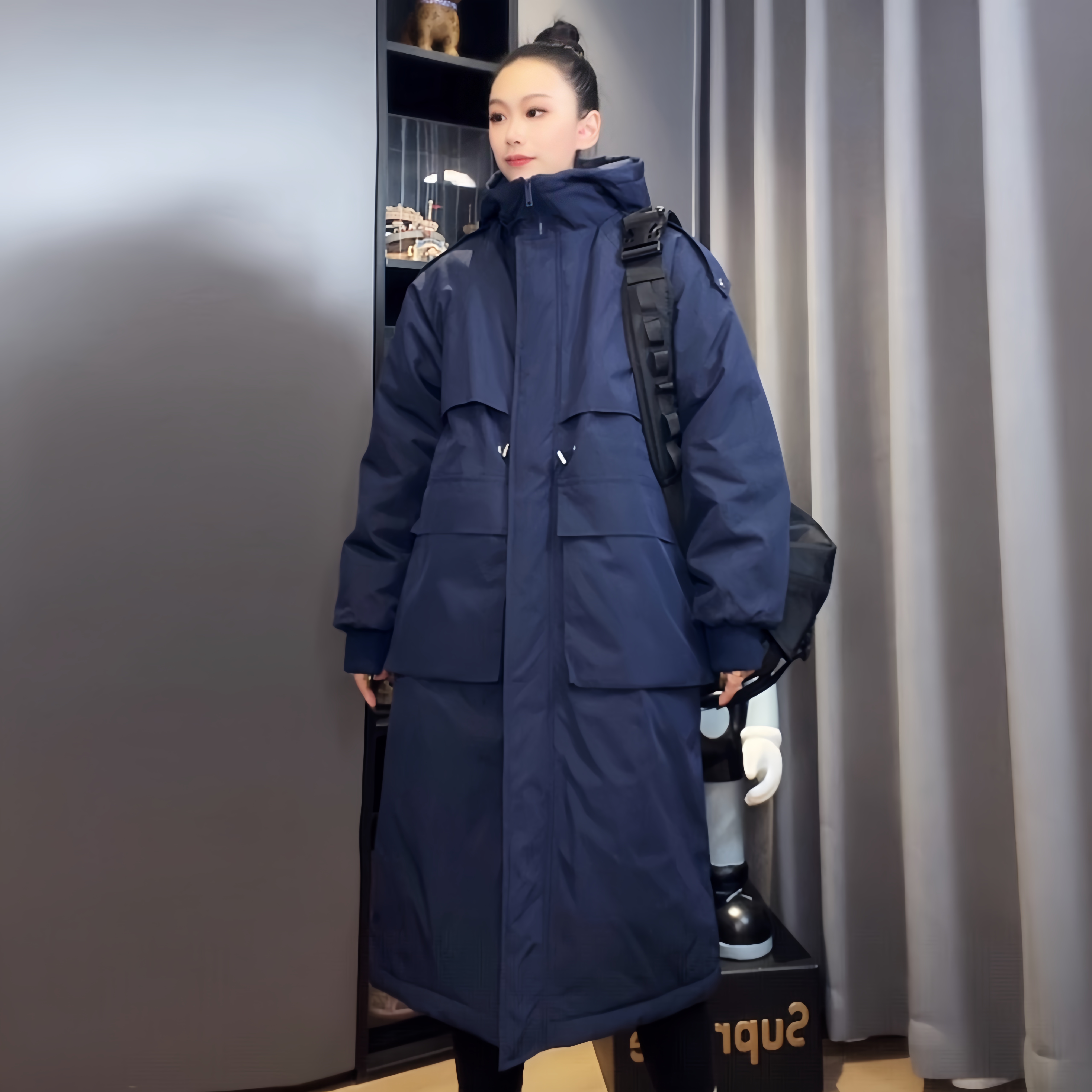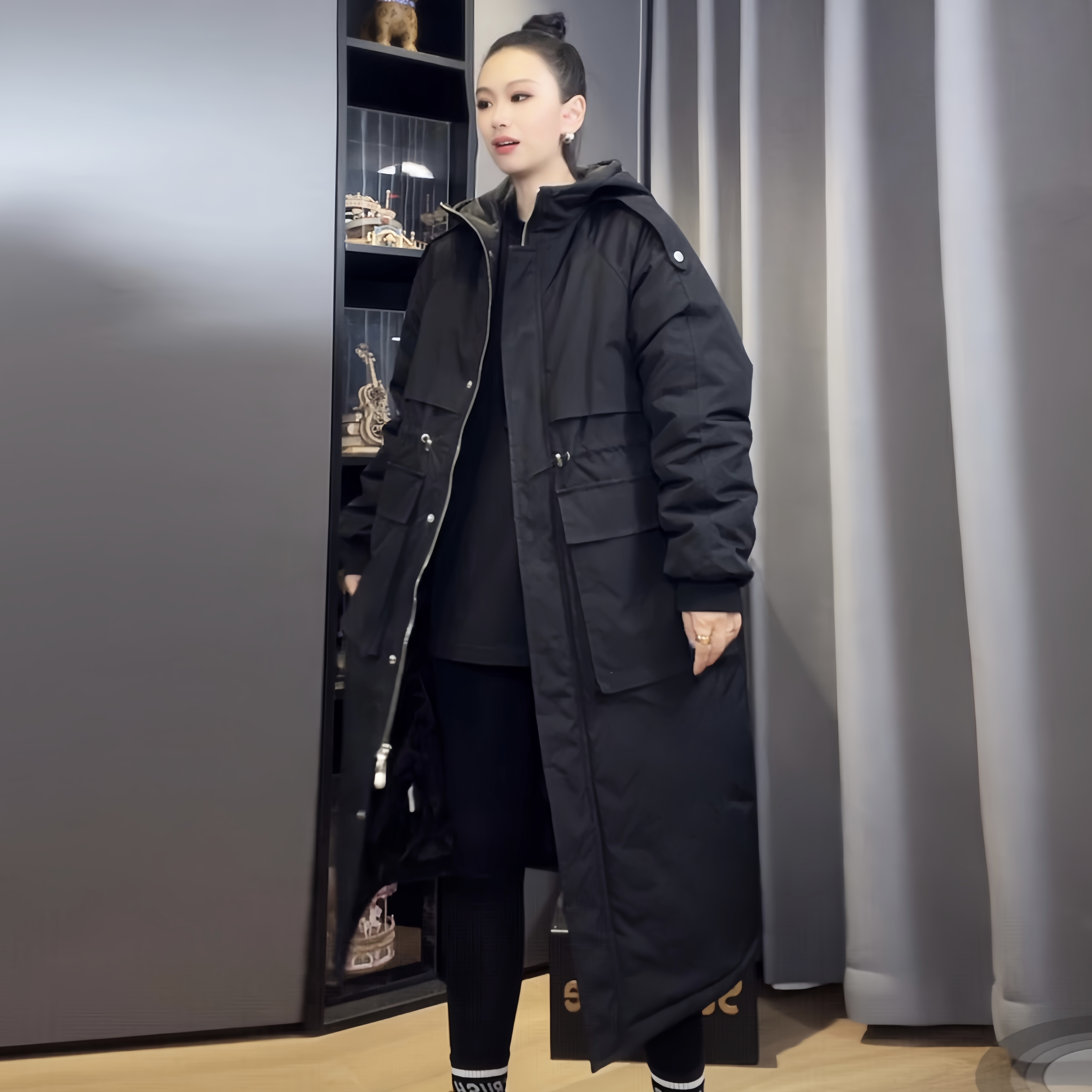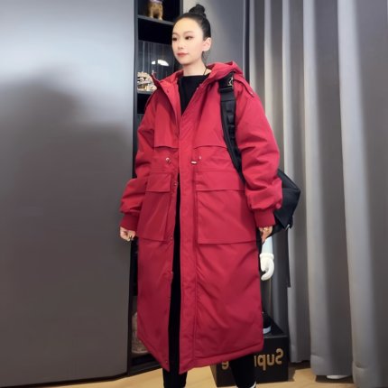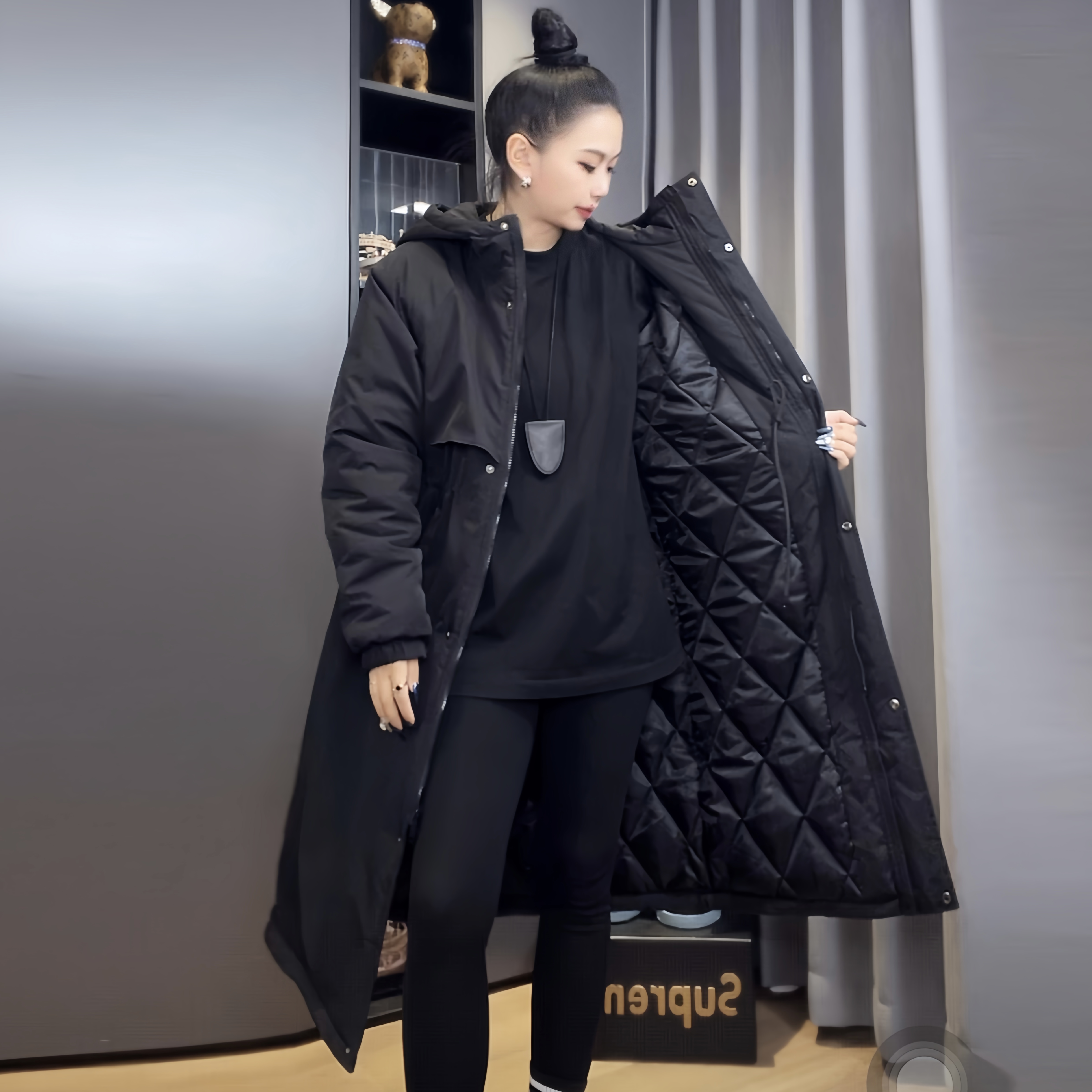 棉服女大码宽松长款韩版连帽加厚棉服过膝中长款休闲冬季外套