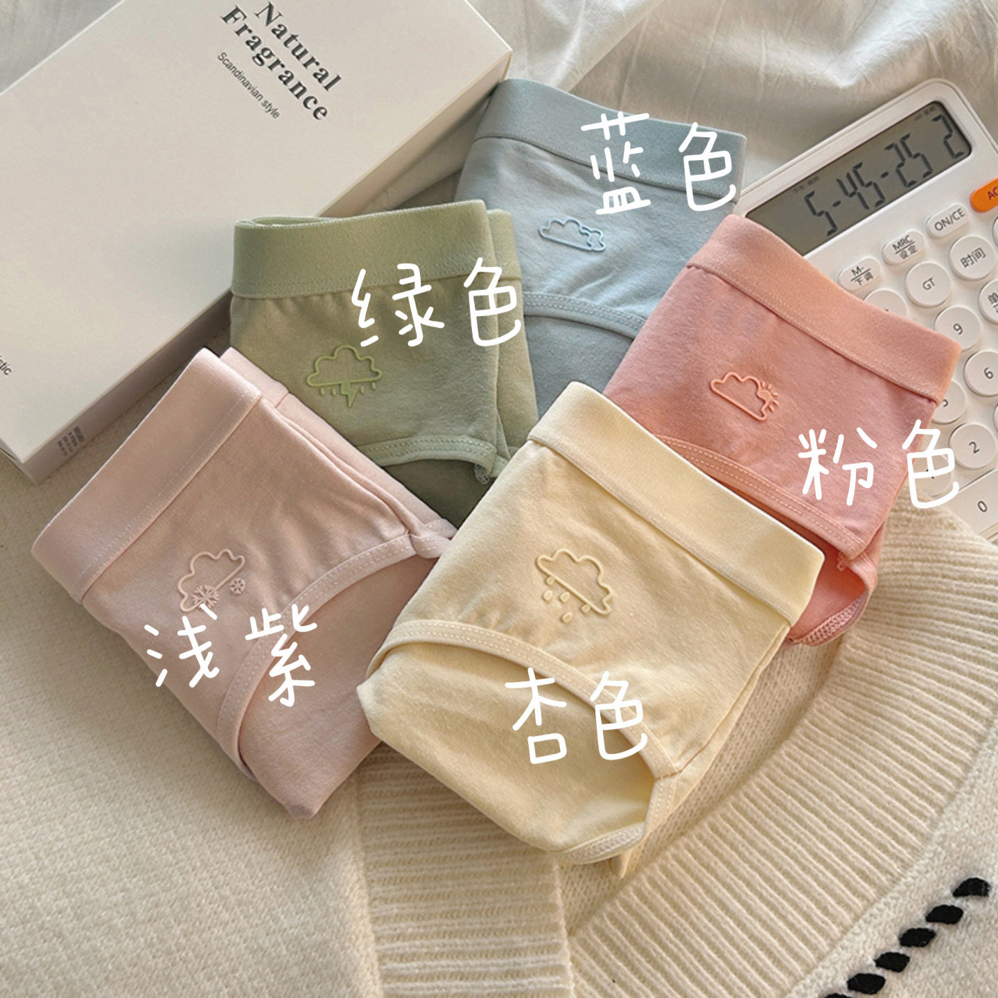 2023新款组合多条装女士纯棉裆抗菌内裤简约纯色天气图案中腰内裤