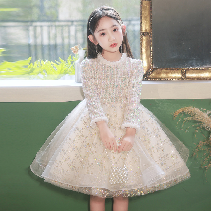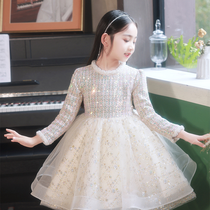 大码礼服中大童生日钢琴主持人演出服花童小女孩蓬蓬裙公主裙长袖