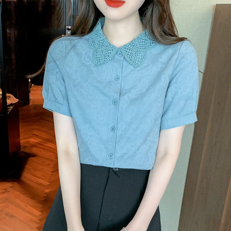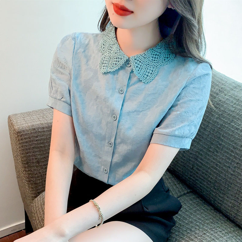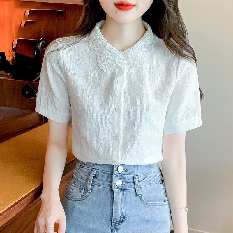 白色衬衫女士2025夏季新款刺绣纯棉花边衬衣气质百搭短袖洋气上衣
