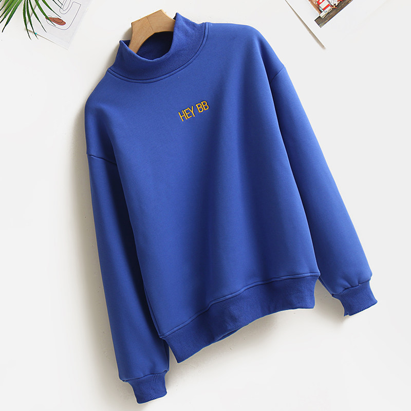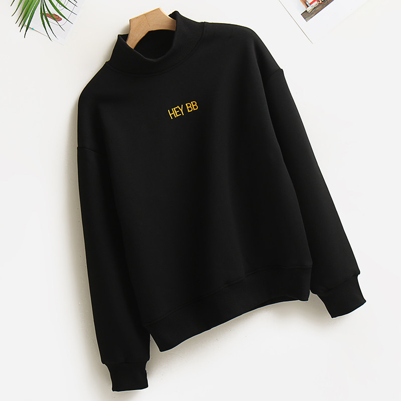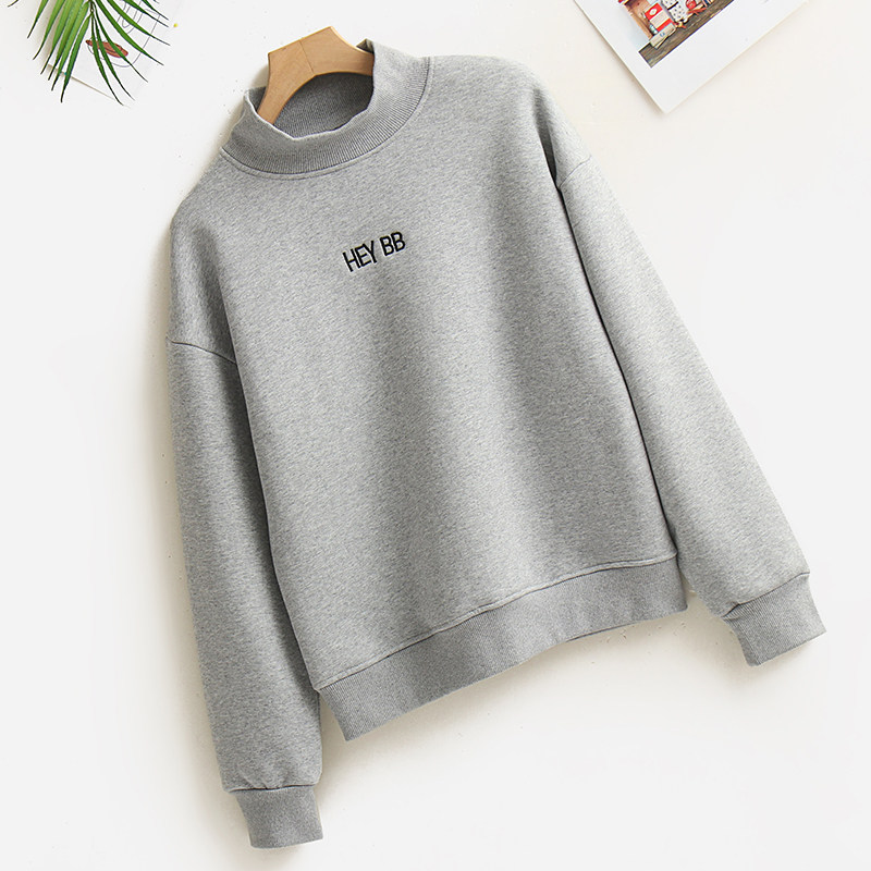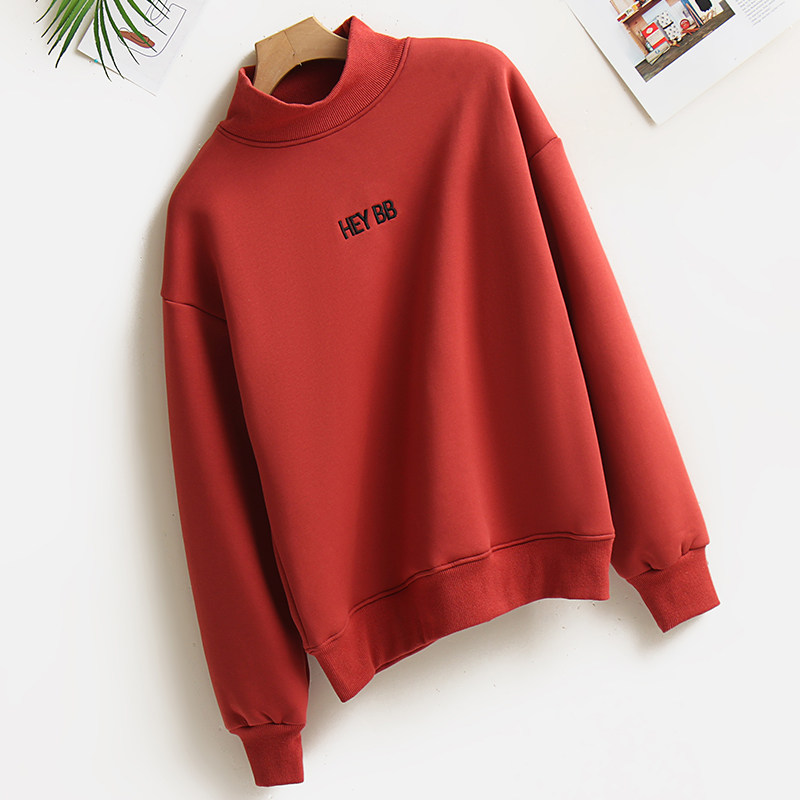 加绒加厚仿羊羔绒毛半高领卫衣