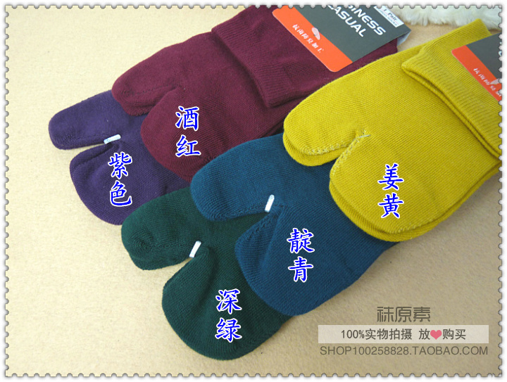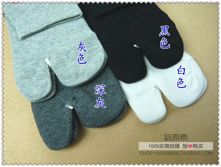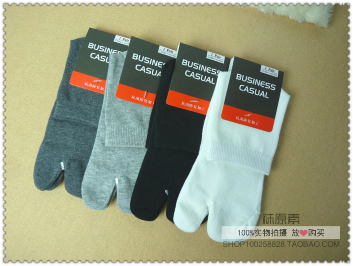 无骨缝头 纯棉男士大码中筒纯色二趾袜夏季分指中薄二指袜木屐袜