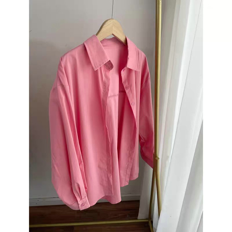 博主款 温柔多巴胺M627粉色宽松大版衬衫 上衣女2025春夏