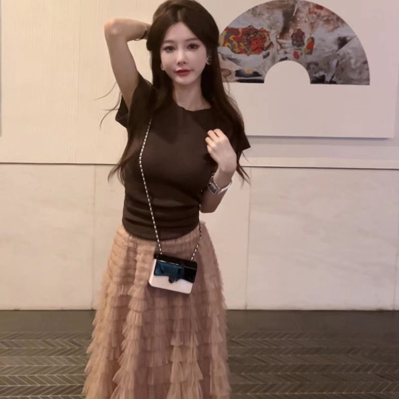 绑带露腰纯欲短袖T恤女夏季别致独特设计感小众露脐短款辣妹上衣