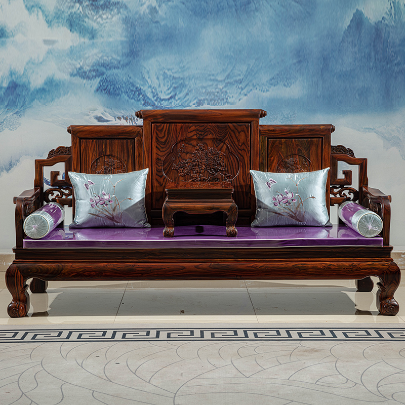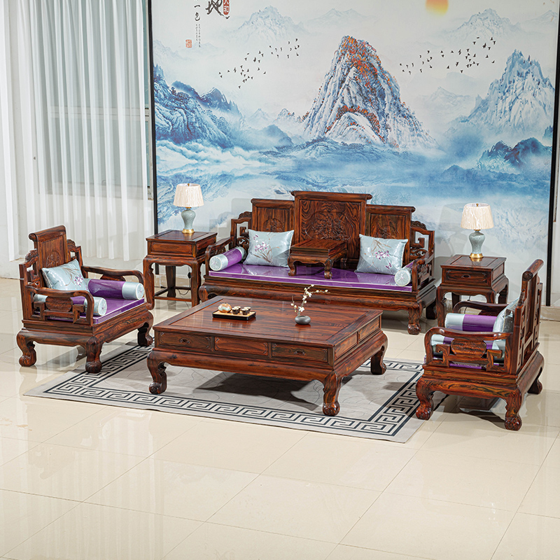 阔叶黄檀印尼黑酸枝古典实木家具卷书沙发现代中式客厅红木沙发