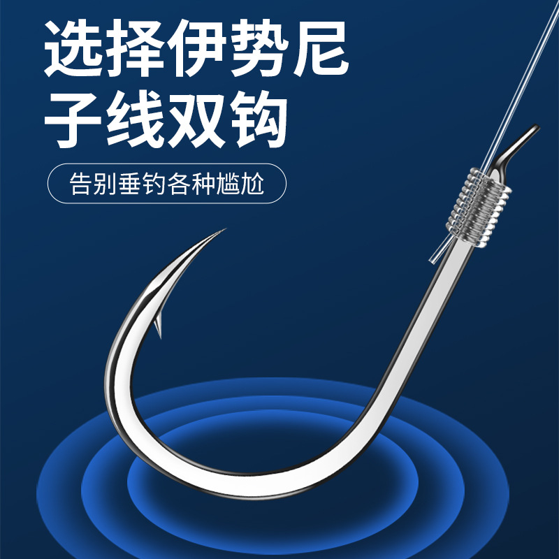 伊势尼成品子线鱼钩正品绑好双钩防缠绕鱼钩套装黑坑野钓湖库大物