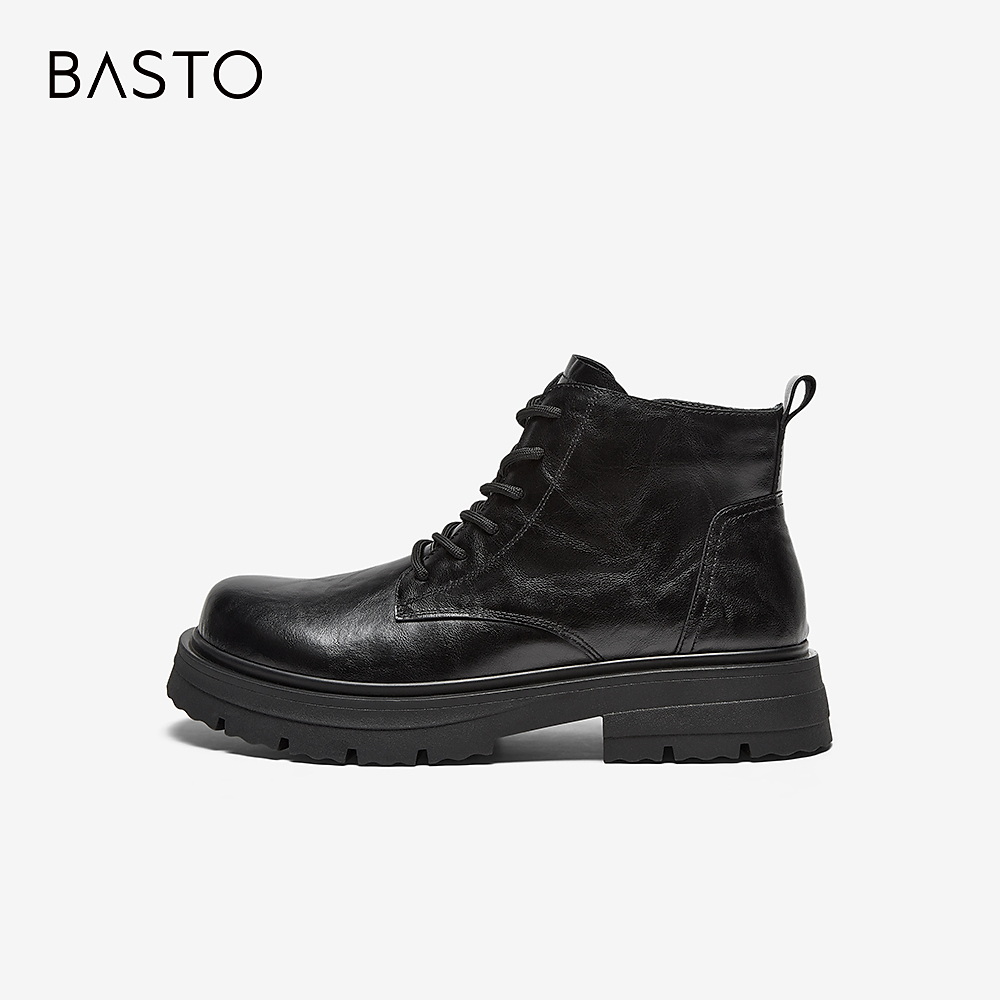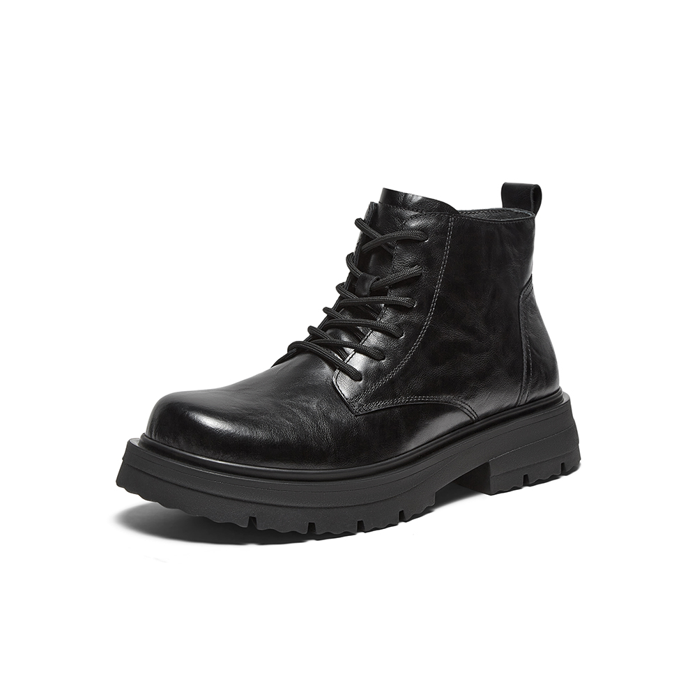百思图冬季新款简约户外运动马丁靴粗跟圆头男短靴8M525DD4