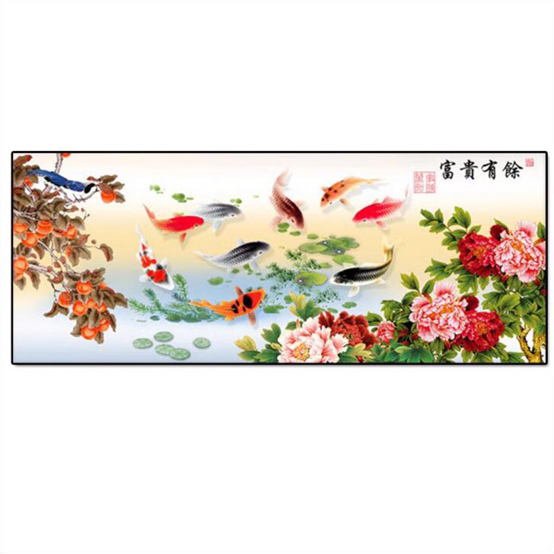 九鱼牡丹花图2025新款富贵有徐钻石贴画手工diy点贴绣带框装饰画