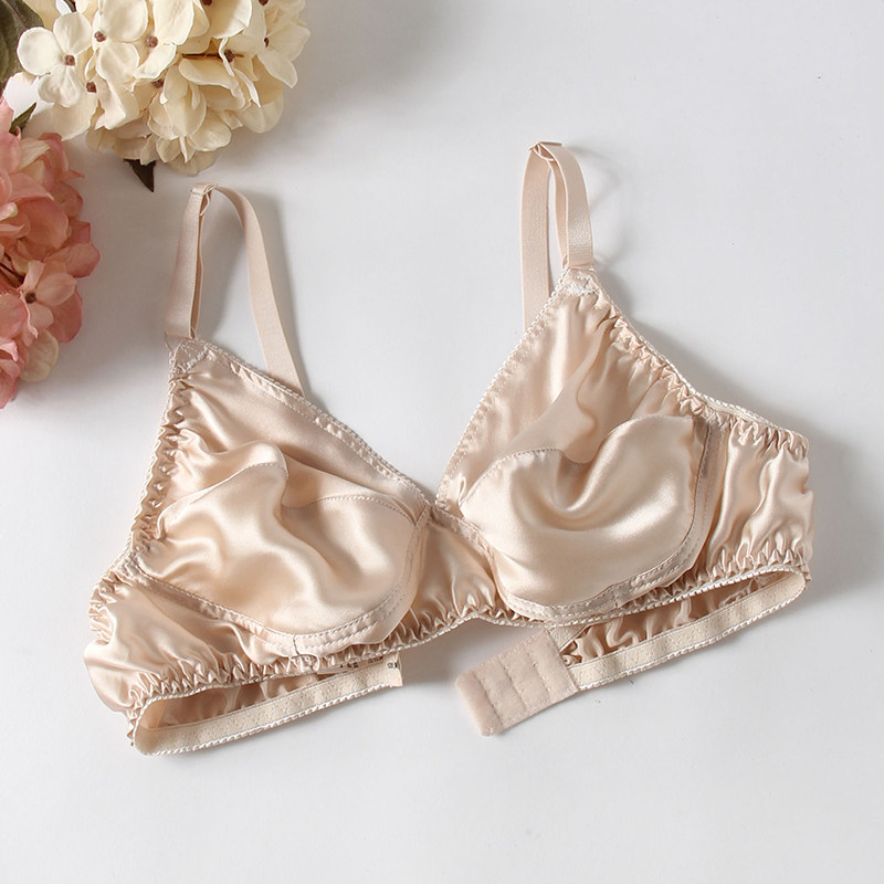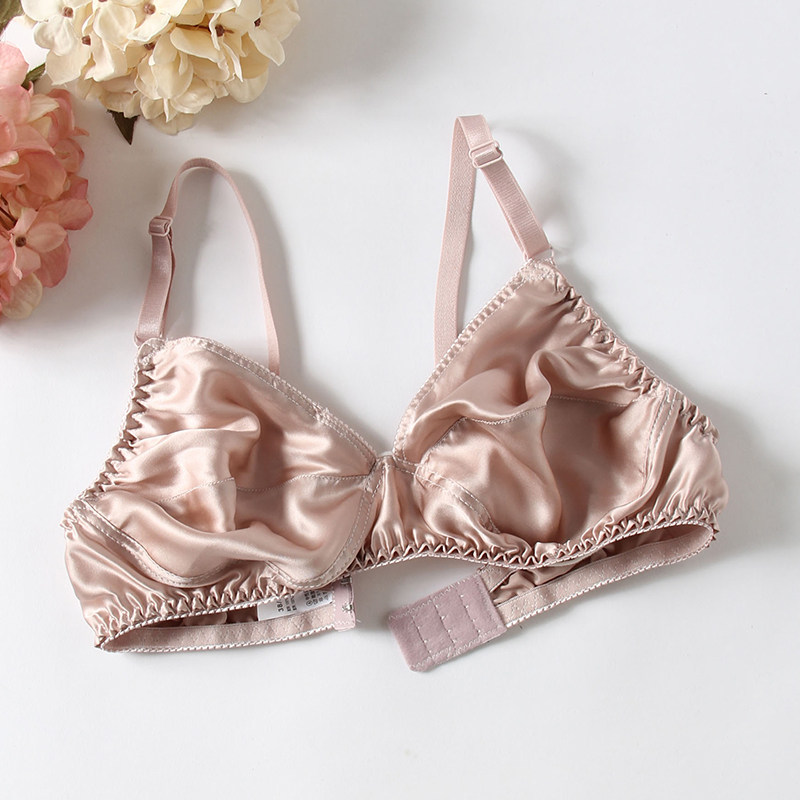 超薄款真丝文胸100%桑蚕丝双面真丝无钢圈无海绵保健内衣女超薄夏