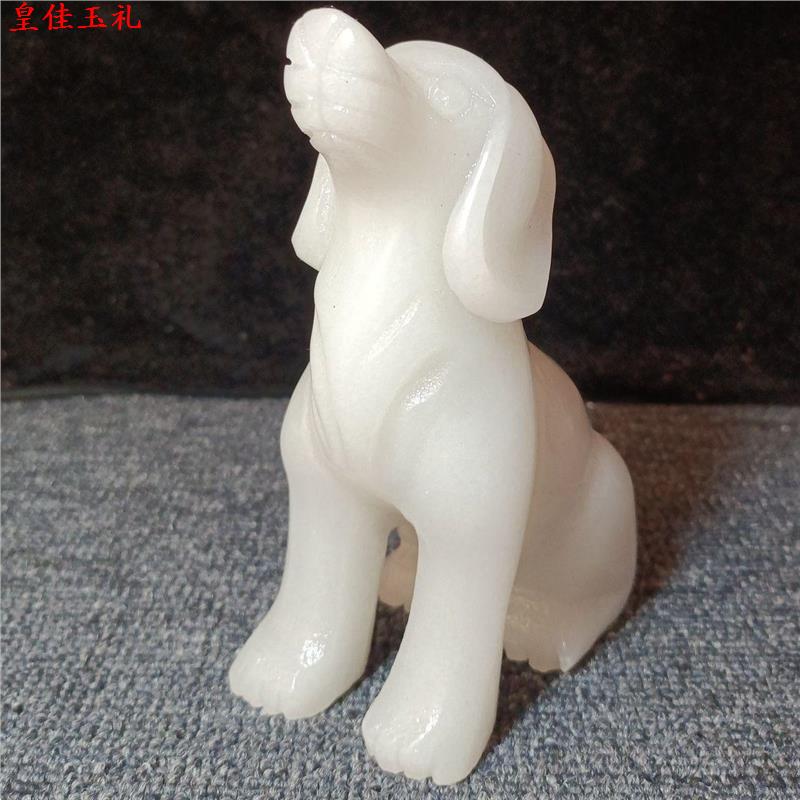 天然白玉狗摆件客厅玄关招财镇宅十二生肖玉石狗家居装饰摆设桌面