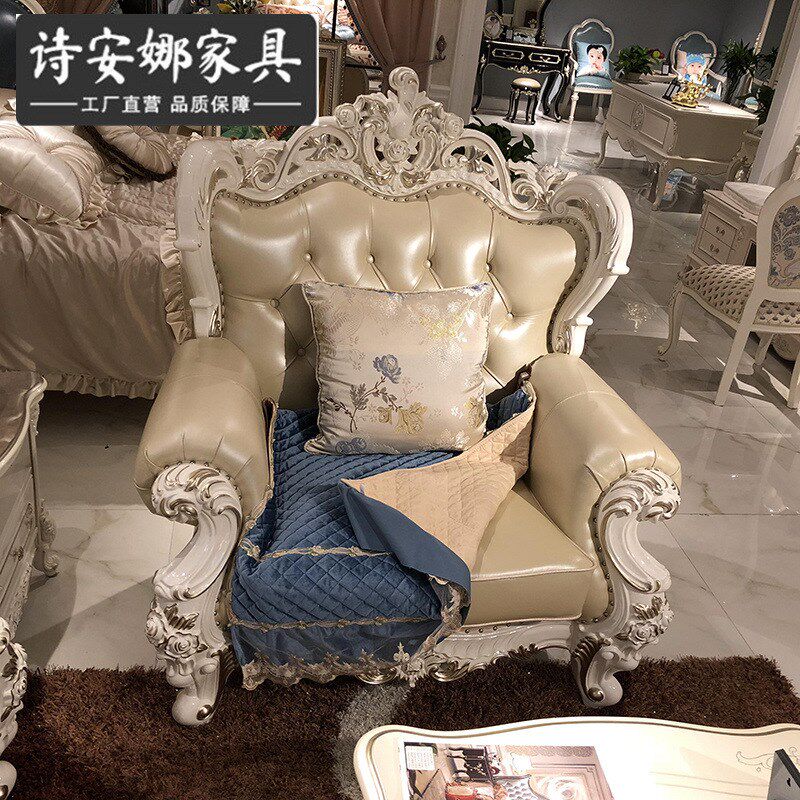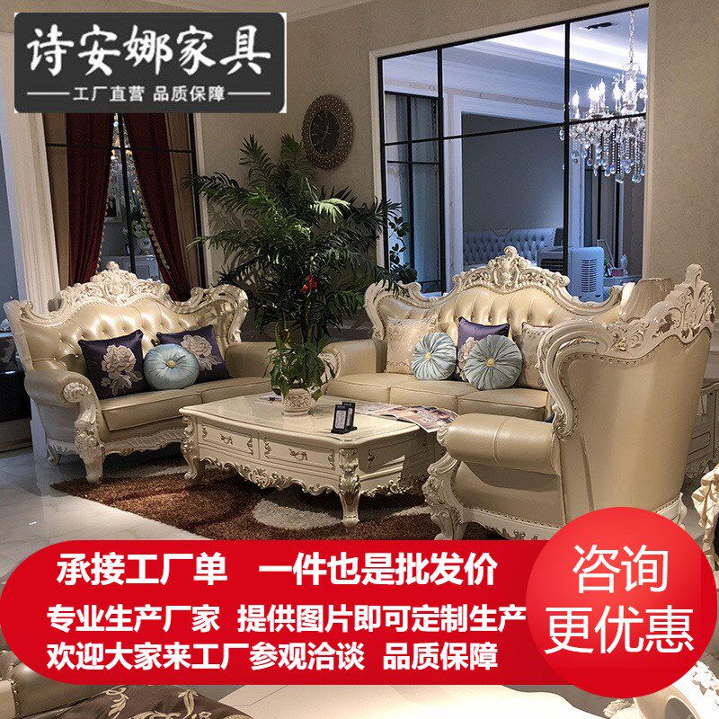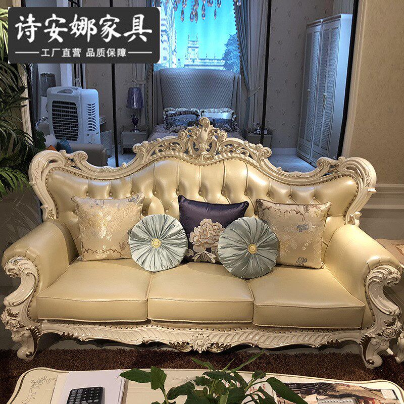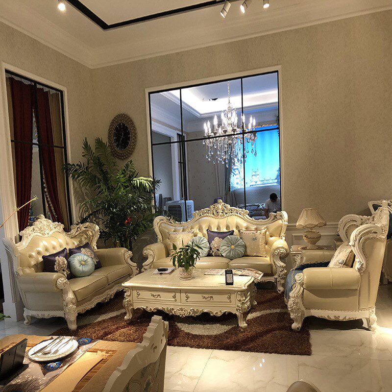 欧式皮艺沙发 新古典123组合客厅大小户型珍珠白实木雕花家具