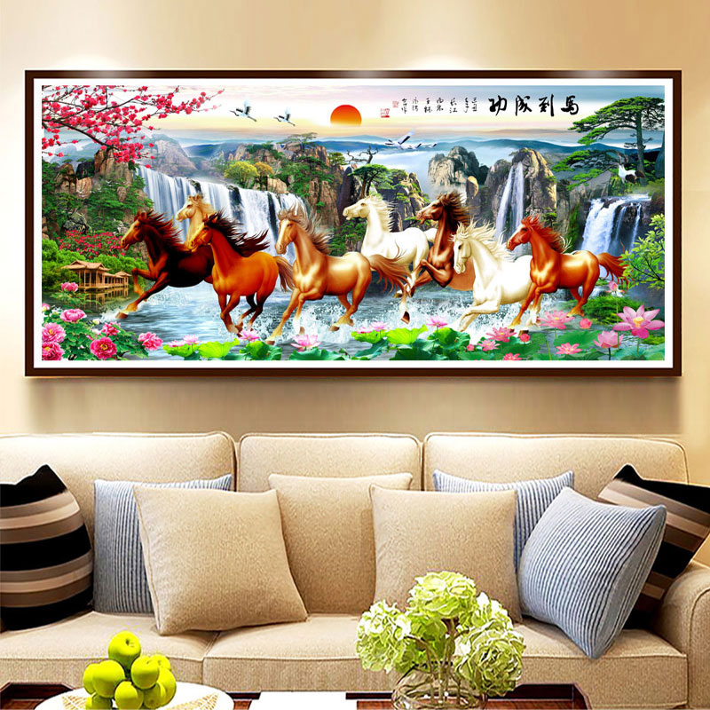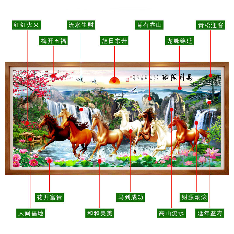 线绣十字绣2025新款绣客厅山水风景画八骏图马到成功满绣大幅大气