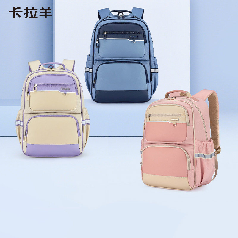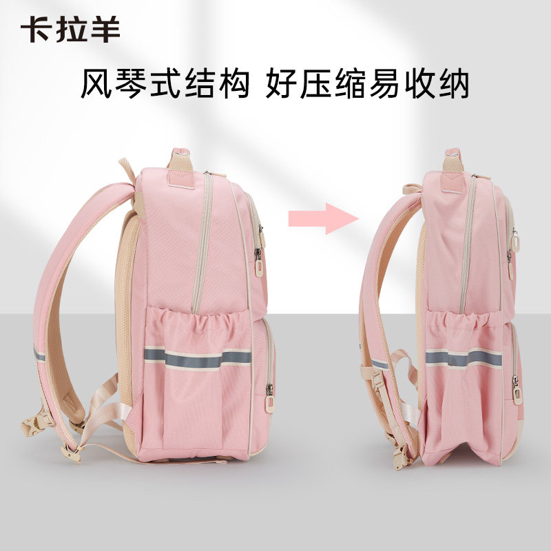 卡拉羊中学生减负风琴书包大容量初中生双肩包男防下坠轻便背包女