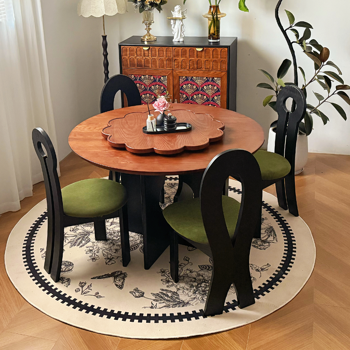 卡答宋式美学实木圆形餐桌椅组合法式复古风家用中古风圆桌带转盘