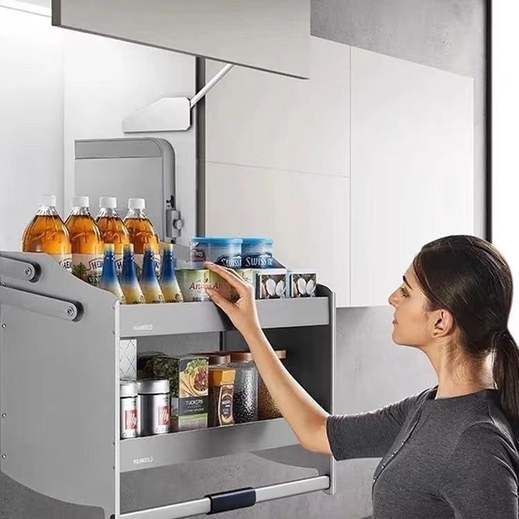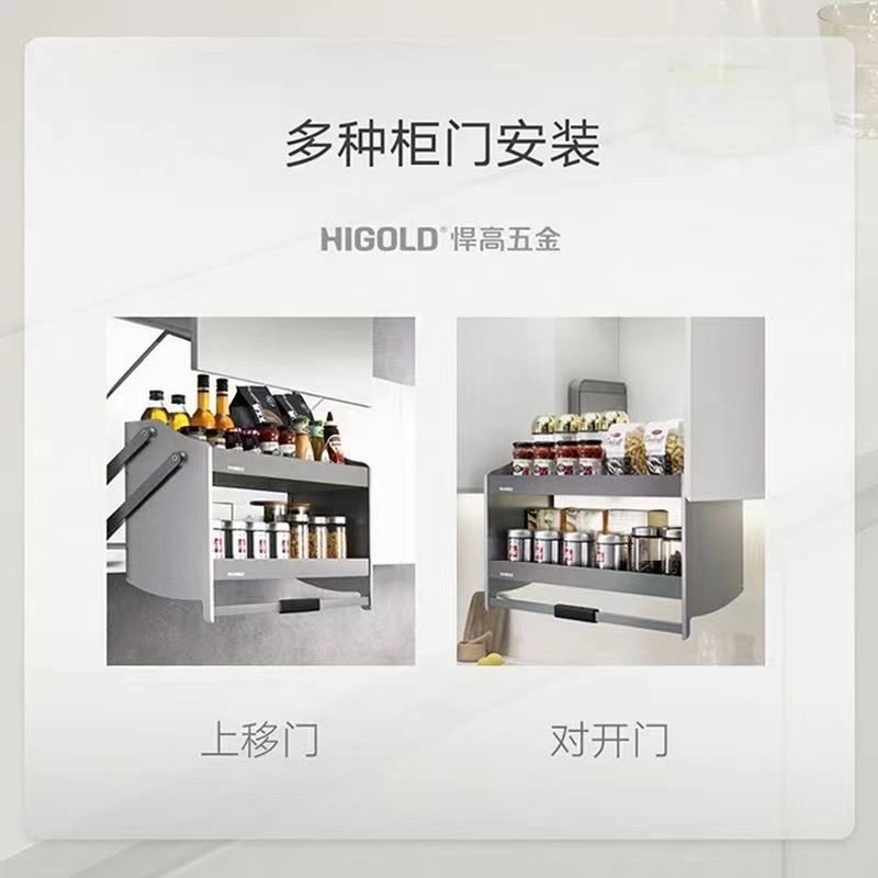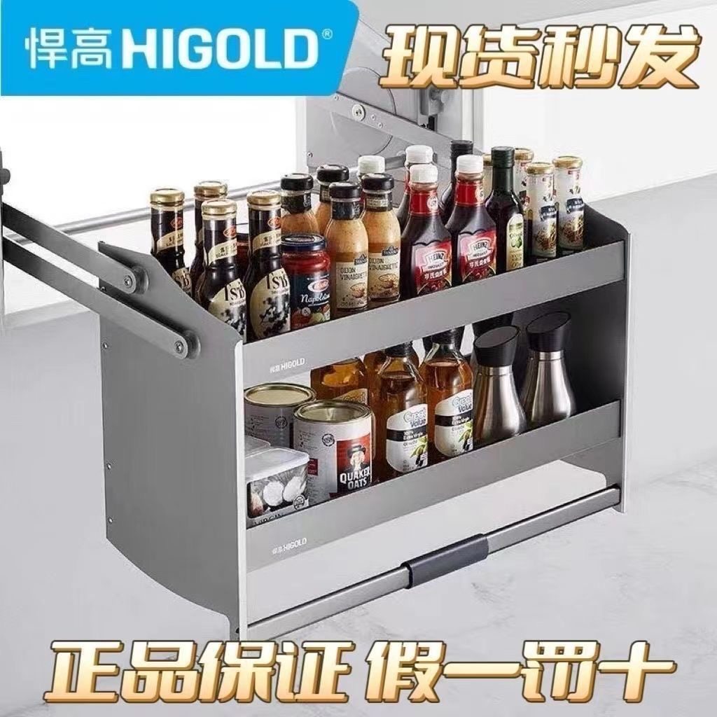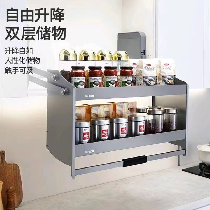 悍高希勒系列升降机厨房吊柜阻尼双层拉篮高柜下拉调味篮顶柜升降