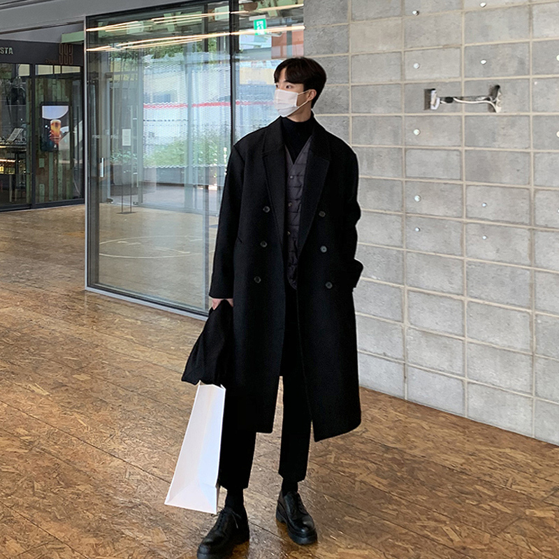 黑色长款教父垫肩毛呢大衣男冬季加厚cleanfit克苏鲁文职风衣外套