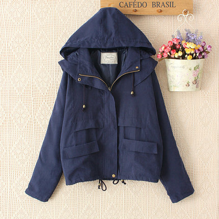 2025春装新款韩版连帽系带风衣女学院风纯色复古长袖百搭小外套潮
